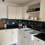 Det finns ett komplett kök där du kan hitta köksredskap för självhushållning.